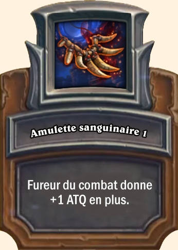 Amulette sanguinaire Fureur du combat donne +2 ATQ en plus Fureur du combat donne +3 ATQ en plus Fureur du combat donne +4 ATQ en plus |