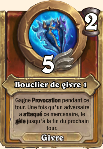 Bouclier de givre Gagne Provocation pendant ce tour. [...] Gagne Provocation pendant ce tour. [...] Gagne Provocation pendant ce tour. [...] Gagne Provocation pendant ce tour. [...] |