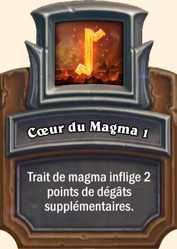 Cœur du Magma Trait de magma inflige 3 points de dégâts supplémentaires Trait de magma inflige 4 points de dégâts supplémentaires Trait de magma inflige 5 points de dégâts supplémentaires |