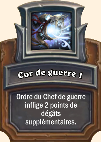 Cor de guerre Ordre du Chef de guerre inflige 3 points de dégâts supplémentaires Ordre du Chef de guerre inflige 4 points de dégâts supplémentaires Ordre du Chef de guerre inflige 5 points de dégâts supplémentaires |