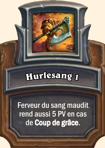 Hurlesang Ferveur du sang maudit rend aussi 10 PV en cas de Coup de grâce Ferveur du sang maudit rend aussi 15 PV en cas de Coup de grâce Ferveur du sang maudit rend aussi 20 PV en cas de Coup de grâce |