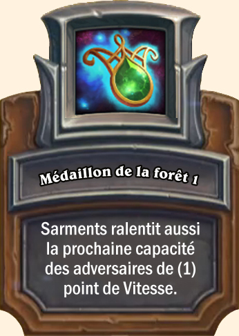 Médaillon de la forêt Sarments ralentit aussi la prochaine capacité des adversaires de (2) points de Vitesse Sarments ralentit aussi la prochaine capacité des adversaires de (3) points de Vitesse Sarments ralentit aussi la prochaine capacité des adversaires de (4) points de Vitesse |