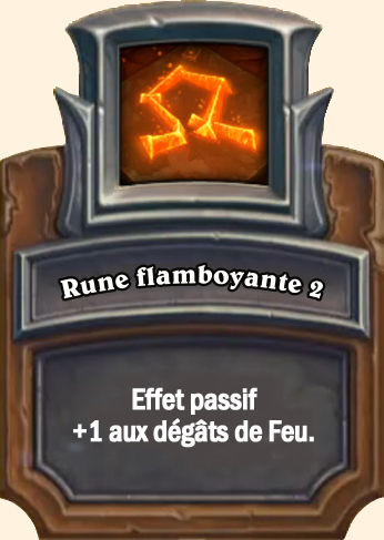 Rune flamboyante Effet passif. +2 aux dégâts de Feu Effet passif. +3 aux dégâts de Feu |