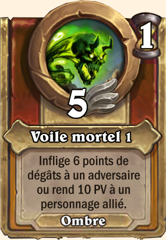 Voile mortel Inflige 10 points de dégâts à un adversaire ou rend 16 PV à un personnage allié Inflige 14 points de dégâts à un adversaire ou rend 22 PV à un personnage allié Inflige 16 points de dégâts à un adversaire ou rend 26 PV à un personnage allié Inflige 18 points de dégâts à un adversaire ou rend 30 PV à un personnage allié |