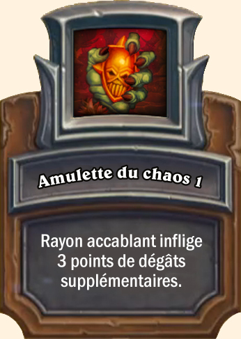 Amulette du chaos Rayon accablant inflige 4 points de dégâts supplémentaires Rayon accablant inflige 5 points de dégâts supplémentaires Rayon accablant inflige 6 points de dégâts supplémentaires |