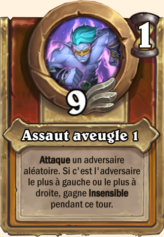 Assaut aveugle Attaque un adversaire aléatoire. Si c'est l'adversaire le plus à gauche ou le plus à droite, [...] Attaque un adversaire aléatoire. Si c'est l'adversaire le plus à gauche ou le plus à droite, [...] Attaque un adversaire aléatoire. Si c'est l'adversaire le plus à gauche ou le plus à droite, [...] Attaque un adversaire aléatoire. Si c'est l'adversaire le plus à gauche ou le plus à droite, [...] |