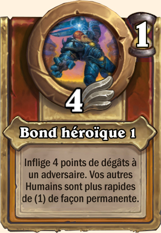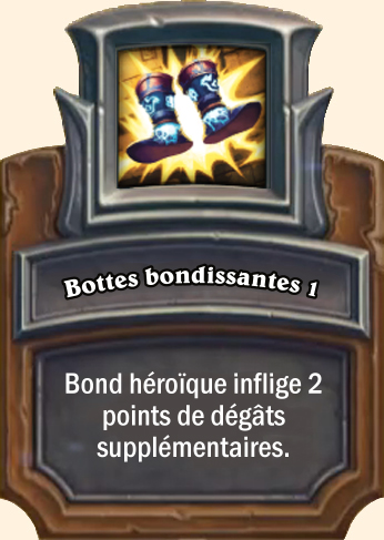 Bottes bondissantes Bond héroïque inflige 3 points de dégâts supplémentaires Bond héroïque inflige 4 points de dégâts supplémentaires Bond héroïque inflige 5 points de dégâts supplémentaires |