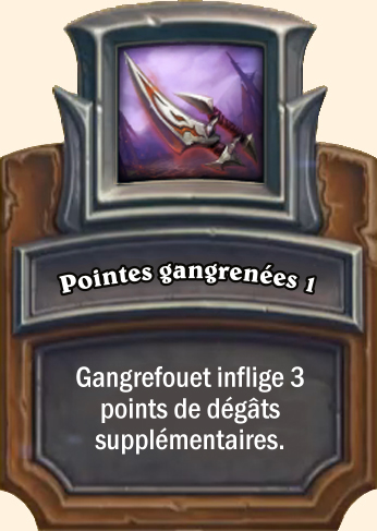 Pointes gangrenées Gangrefouet inflige 4 points de dégâts supplémentaires Gangrefouet inflige 5 points de dégâts supplémentaires Gangrefouet inflige 6 points de dégâts supplémentaires |