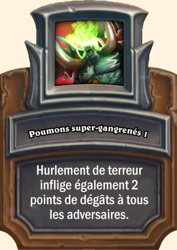 Poumons super-gangrenés Hurlement de terreur inflige également 3 points de dégâts à tous les adversaires Hurlement de terreur inflige également 4 points de dégâts à tous les adversaires Hurlement de terreur inflige également 5 points de dégâts à tous les adversaires |