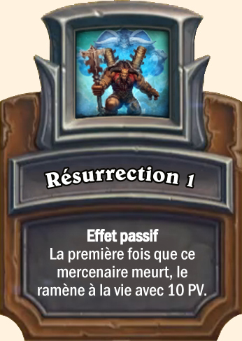 Résurrection Effet passif. La première fois que ce mercenaire meurt, le ramène à la vie avec 20 PV Effet passif. La première fois que ce mercenaire meurt, le ramène à la vie avec 30 PV Effet passif. La première fois que ce mercenaire meurt, le ramène à la vie avec 40 PV |