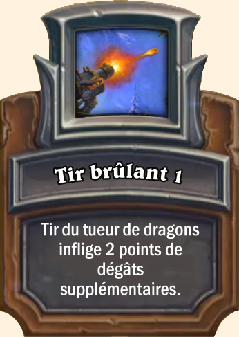 Tir brûlant Tir du tueur de dragons inflige 3 points de dégâts supplémentaires Tir du tueur de dragons inflige 4 points de dégâts supplémentaires Tir du tueur de dragons inflige 5 points de dégâts supplémentaires |