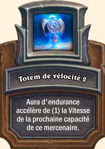 Totem de vélocité Aura d'endurance accélère de (2) la Vitesse de la prochaine capacité de ce mercenaire Aura d'endurance accélère de (3) la Vitesse de la prochaine capacité de ce mercenaire |