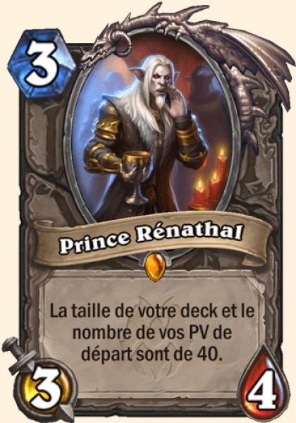 • Prince Rénathal : Connectez-vous à Hearthstone après la sortie de la mise à jour 23.6 pour recevoir gratuitement le serviteur légendaire Prince Rénathal, jouable immédiatement ! (Après la mise à jour 24.6, le Prince Rénathal sera attribué en ouvrant votre premier paquet de cartes Meurtre au château de Nathria et non pas en vous connectant).