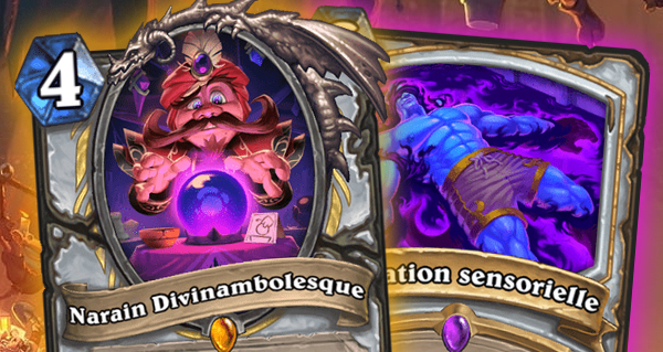 Ces cartes sont toutes destinées au Prêtre. Parmi lesquelles nous découvrons la carte légendaire Narain Divinambolesque, une 4/4 pour 4 . Son Cri de guerre permet d'obtenir 2 cartes Bonne aventure qui sont les copies de la carte placée au-dessus de votre deck.