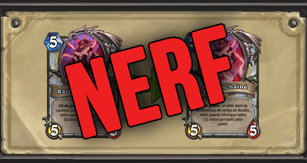 Ce soir, Blizzard annonce via son site officiel les 4 cartes qui seront modifiées au cours du mois prochain. Notez que celles-ci pourront être désenchantées en échange de leur valeur intégrale en poussière arcanique, et ce durant deux semaines après le lancement du patch.