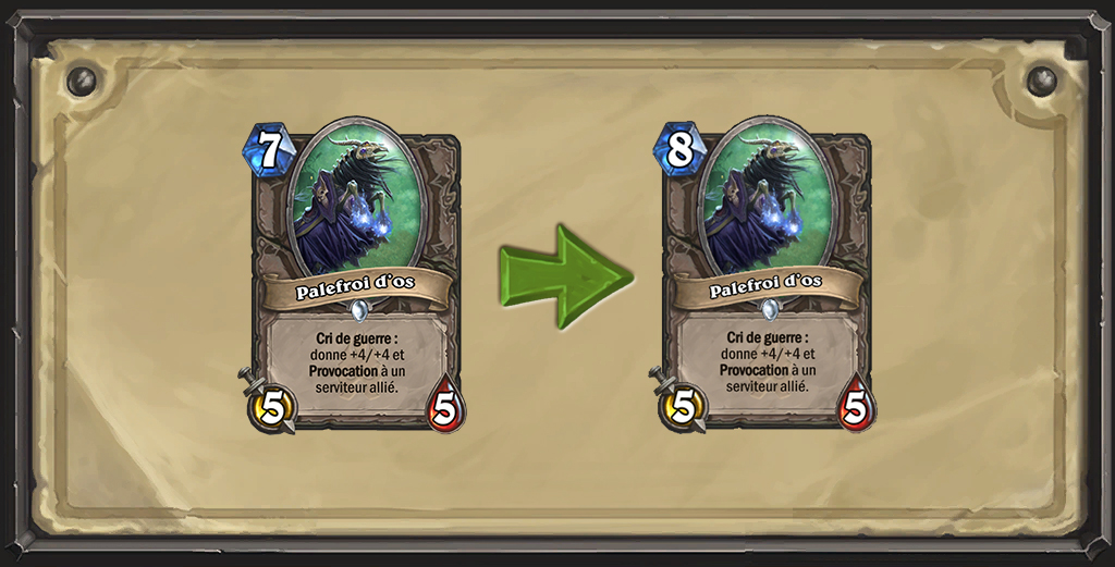 Palefroi d'os coûte désormais 8 cristaux de mana (au lieu de 7)