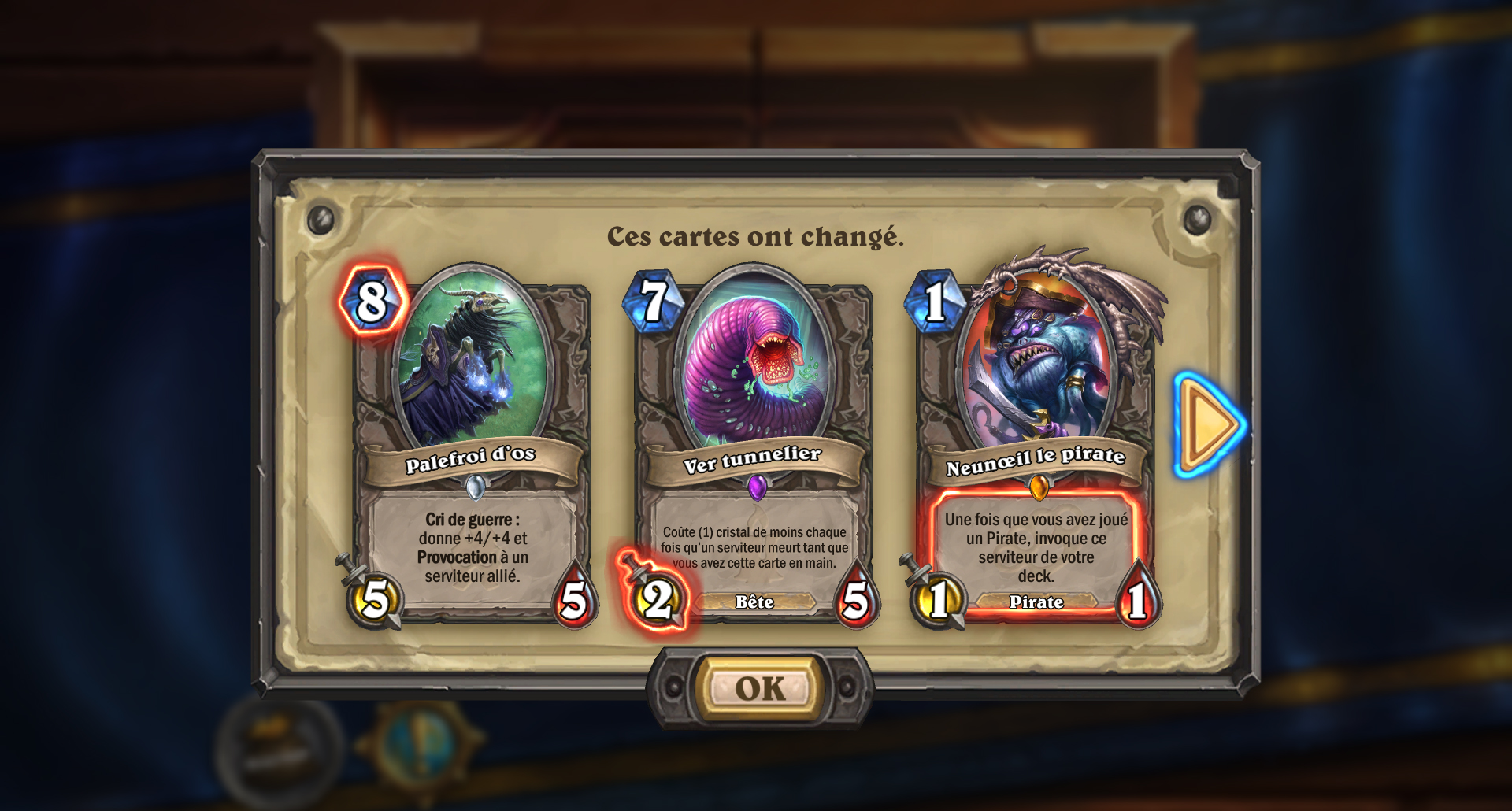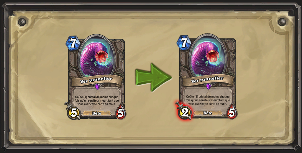 Cartes modifiées – Nous expliquons en détail les raisons et la philosophie qui sous-tendent ces changements dans notre article Modifications d’équilibrage à venir : mise à jour 10.2 sur le site officiel de Hearthstone.