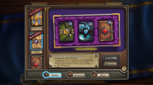 Avec tout le contenu apporté par cette mise à jour de Hearthstone, l’auberge est plus animée que jamais ! Les parties classées se renouvellent, un évènement consacré au format libre débarque, et vous allez pouvoir faire des économies sur vos paquets de cartes avec le nouveau pack du Mammouth ! Cette mise à jour contient également des dos de carte et des corrections de bugs !