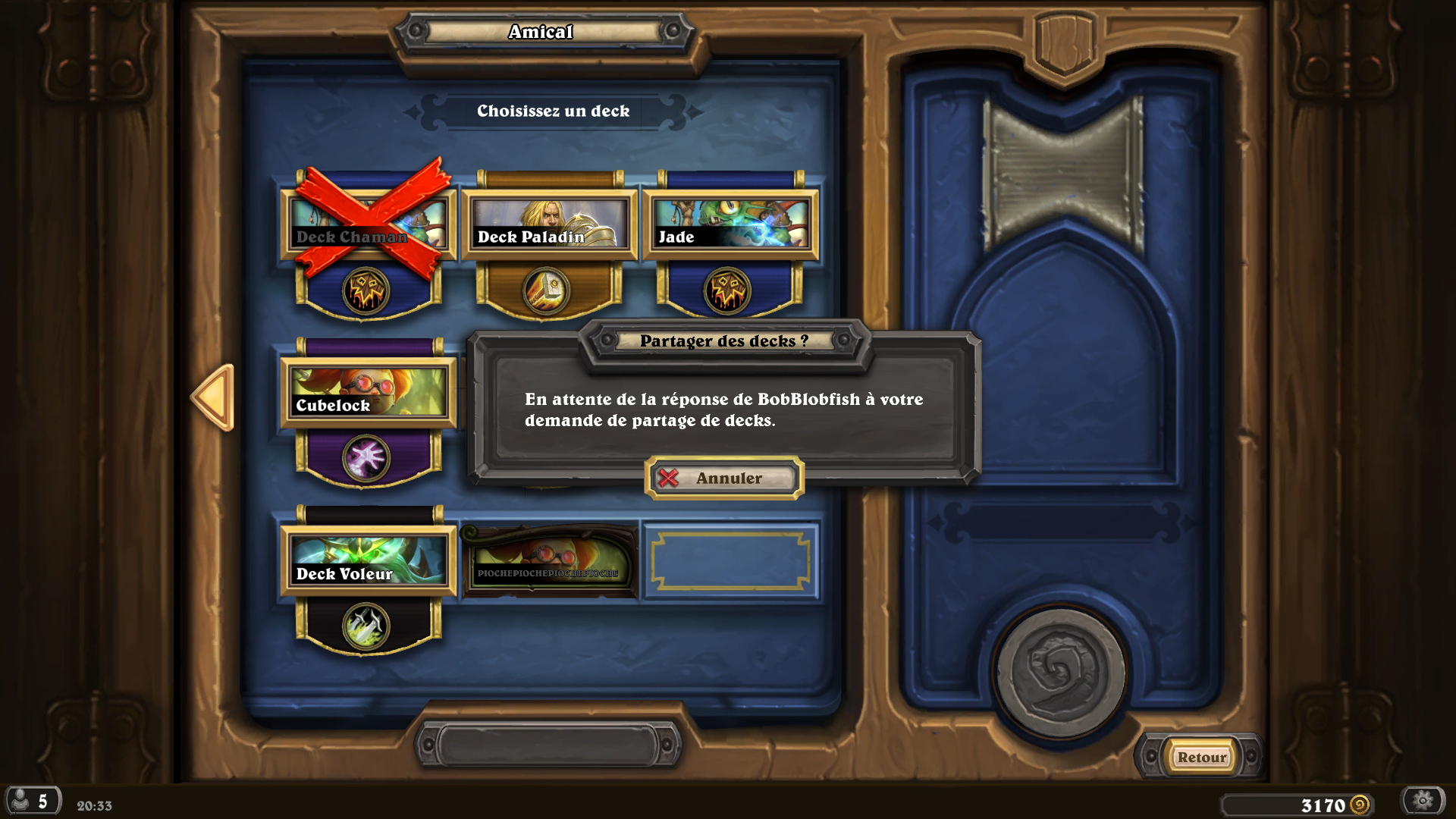 Dévoilée lors du live final du Bois Maudit, la fonctionnalité Emprunt de decks vous permet de jouer un deck d'un ami lors d'un duel amical. Si vous acceptez la demande, l'interface de decks de votre ami apparaît. Ces decks ne peuvent pas être joués en ladder, mais uniquement contre l'ami auquel vous l'empruntez.