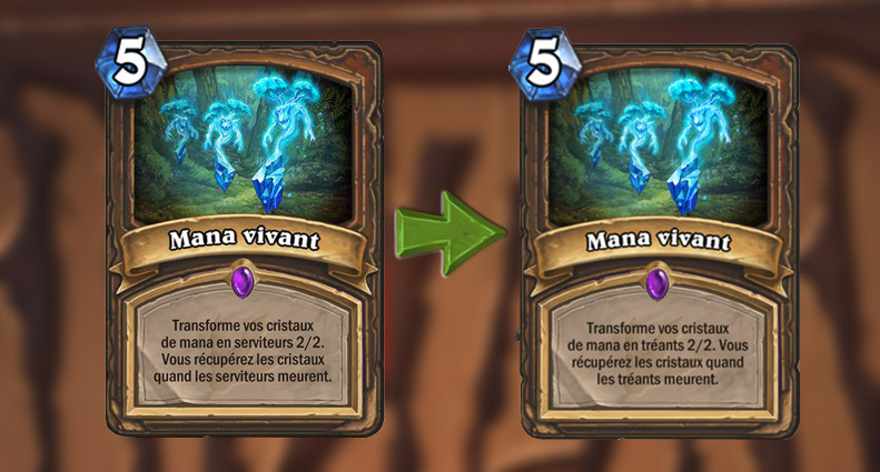 Changement de texte pour le Mana vivant qui devient « Transforme vos cristaux de mana en tréants 2/2. Vous récupérez les cristaux quand les tréants meurent. »