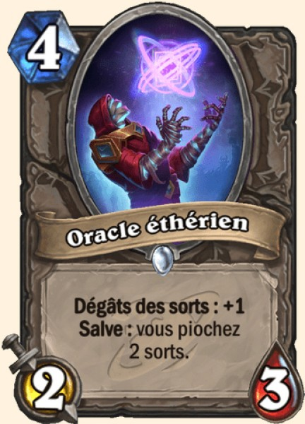 Commentaire de l’équipe de développement : Oracle éthérien est l’une des cartes les plus puissantes et populaires de la méta depuis le lancement de La Ténèbre de l’Au-delà. Avec le recul, nous aurions probablement dû la modifier dès la dernière mise à jour d’équilibrage. Malheureusement, la date de cette mise à jour n’était pas idéale. Nous essayons d’éviter les changements majeurs peu avant une longue pause hivernale, qui nous aurait empêchés de réagir à d’éventuels problèmes imprévus. Nous appliquons donc plutôt ces modifications dans cette mise à jour majeure, étant donné que la sortie du mini-set donnera certainement lieu à une évolution de la méta, et que notre créneau de rééquilibrage habituel est déjà prévu dans quelques semaines pour apporter les ajustements nécessaires.
