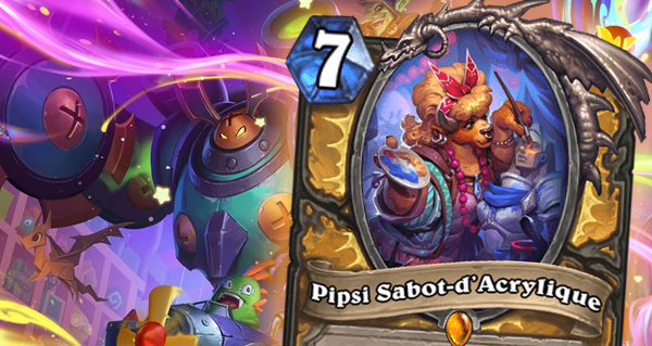 La soirée se termine avec la carte légendaire Pipsi Sabot-d’Acrylique une 4/4 pour 7 cristaux de mana, et aussi avec Offre limitée un sort qui invoque un serviteur Méca 1/2 avec Bouclier divin et Provocation. Donne à vos serviteurs +1/+2.