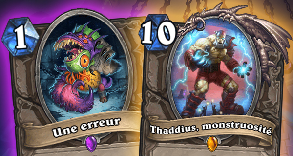 Nous découvrons ensemble, l'Exarque perdue, Une erreur, l'Ombre ténébrante, et pour terminer Thaddius, monstruosité une 11/11 pour 10 cristaux de mana.