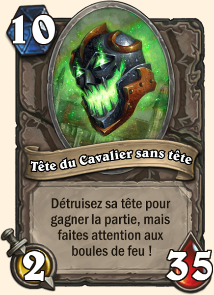 Ce bras de fer événementiel vous propose d'affronter l'IA qui prend la forme du Cavalier sans tête. Le combat se déroule en 2 phases. Dans la première, vous devez tuer le Cavalier sans tête qui dispose de 30 points de vie et du pouvoir héroïque « Entaille ». Ce dernier inflige 2 points de dégâts répartis de façon aléatoire entre tous les adversaires et il lui coûte 3 cristaux de mana.