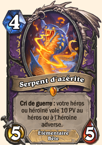 Il s'agit du Serpent d'azérite, le trésor légendaire du Démoniste. Cette carte a pour particularité de voler 10 PV au héros adverse.