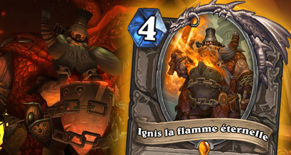 Ignis la flamme éternelle est une carte légendaire neutre. Cette dernière coûte 4 pour 2 d'ATQ et 4 PV. Si vous avez forgé une carte pendant cette partie, son Cri de guerre permet de créer une arme personnalisée.