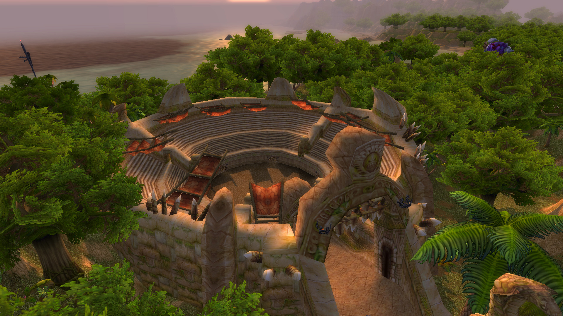 La structure jaune en dessous du perroquet est l'arène des Trolls Gurubashi, située au cap Strangleronce. Une confirmation supplémentaire pour La grande mêlée de Rastakhan ?