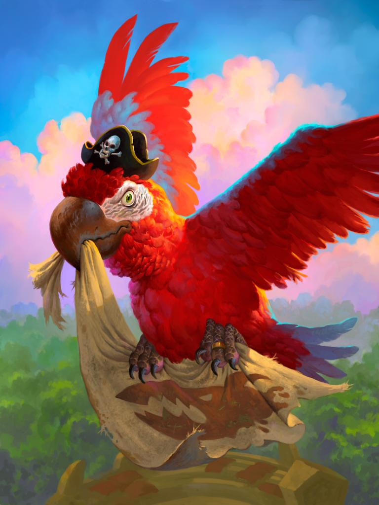 Dans un nouveau tweet officiel, nous découvrons un perroquet pirate rouge avec un drapeau dans le bec.