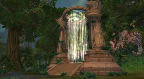 Le cratère d'Un'Goro, situé au sud du continent de Kalimdor, et le bassin de Sholazar, situé à l'ouest du Norfendre, sont d'ailleurs reliés par un téléporteur. Il peut être aperçu dans Hearthstone avec la quête Mage Ouverture du portail. On retrouve donc au bassin de Sholazar des structures conçues par les forgés par les titans, dont cinq immenses piliers.