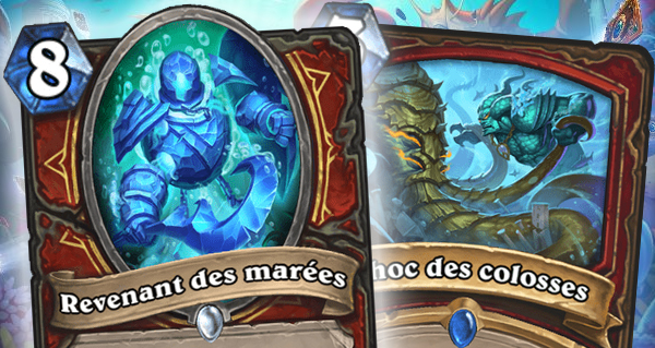Nous découvrons 2 serviteurs Elémentaires Revenant des marées et Goinfre de lave igné ainsi que le sort Choc des colosses qui ajoute un serviteur aléatoire Colossal dans votre main et celle de votre adversaire. Le vôtre coûte (2) cristaux de moins.