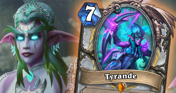 Tyrande, est une 5/7 pour 7 cristaux de mana. Son Cri de guerre fait en sorte que vos trois prochains sorts soient lancés deux fois.