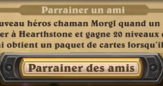 Afin d'obtenir Morgl l'Oracle, le nouveau héros alternatif du Chaman, vous devez inviter un de vos amis à vous rejoindre Hearthstone. S'il cumule 20 niveaux avec tous ses héros, vous obtenez le héros ! Notez que votre ami obtient de son côté un paquet de cartes gratuit.