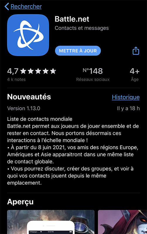 L'application Battle.net bénéficie d'une toute nouvelle mise à jour comme vous pouvez le constater sur la plateforme d'applications pour votre téléphone.