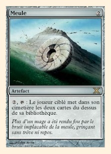 C'est ici que réside l'objectif des decks Meule : forcer l'adversaire à piocher tout son deck le plus rapidement possible et le tuer avec les dégâts de la Fatigue. Bien entendu, les cartes meulées en cours de route font aussi partie de la stratégie : les cartes clefs de l'adversaire seront détruites avant même qu'il ne puisse les utiliser.