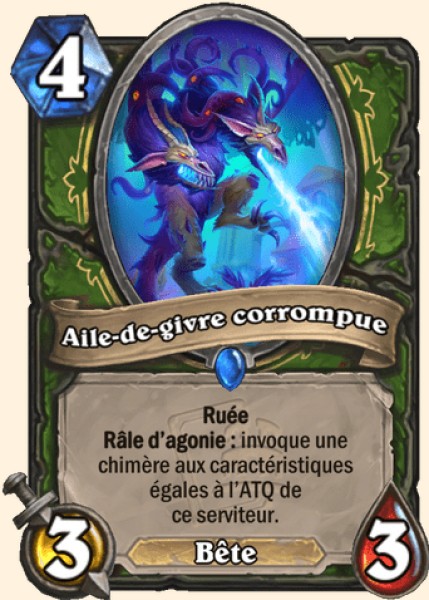 | Description | Ruée Râle d’agonie : invoque une chimère aux caractéristiques égales à l’ATQ de ce serviteur. |
