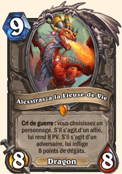 | Description | Cri de guerre : vous choisissez un personnage. S’il s’agit d’un allié, lui rend 8 PV. S’il s’agit d’un adversaire, lui inflige 8 points de dégâts. |