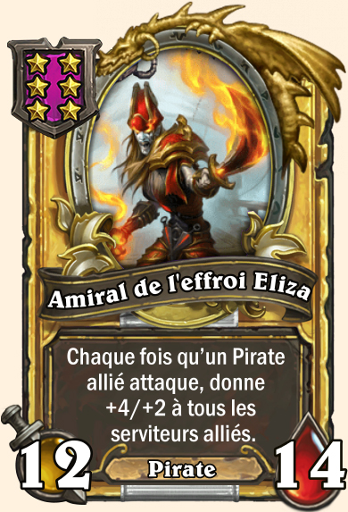 | Description | Chaque fois qu’un Pirate allié attaque, donne +2/+1 à tous les serviteurs alliés. |