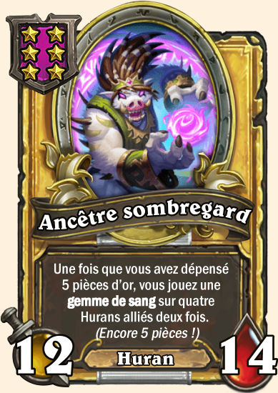 | Description | Une fois que vous avez dépensé 5 pièces d’or, vous jouez une gemme de sang sur quatre Hurans alliés. (Encore 5 pièces !) |