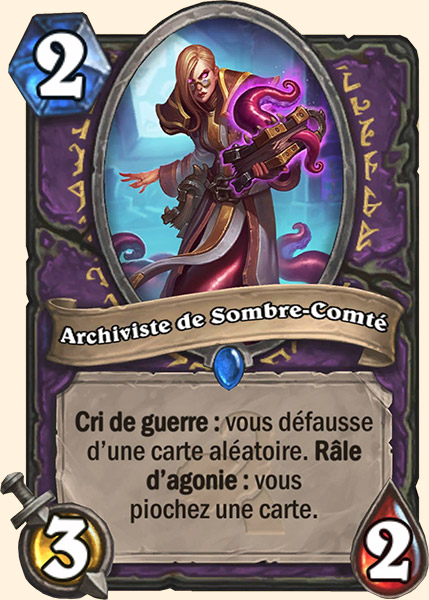 | Description | Cri de guerre : vous défausse d'une carte au hasard.Râle d'agonie : vous piochez une carte. |