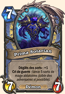 | Description | Dégâts des sorts +1. Râle d'agonie : place la carte Prima Solarian dans votre deck. |