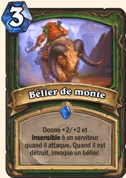 | Description | Donne +2/+2 et Insensible à un serviteur quand il attaque. Quand il est détruit, invoque un bélier. |