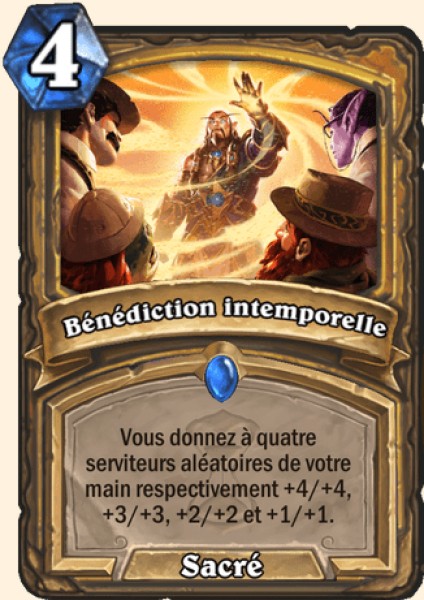 | Description | Vous donnez à quatre serviteurs aléatoires de votre main respectivement +4/+4, +3/+3, +2/+2 et +1/+1. |