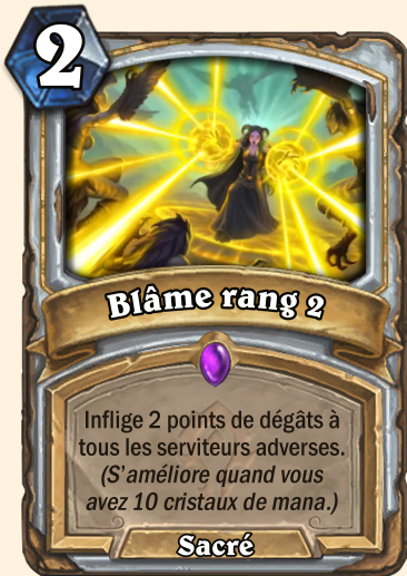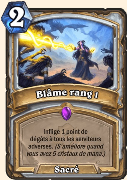| Description | Inflige 1 point de dégâts à tous les serviteurs adverses. (S’améliore quand vous avez 5 cristaux de mana.) |