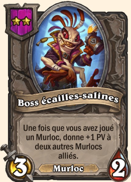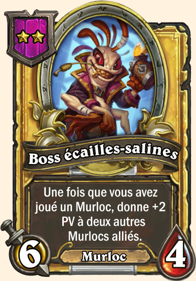 | Description | Une fois que vous avez joué un Murloc, donne +1 PV à deux autres Murlocs alliés. |