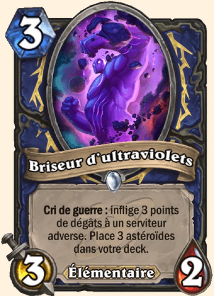 | Description | Cri de guerre : inflige 3 points de dégâts à un serviteur adverse. Place 3 astéroïdes dans votre deck. |