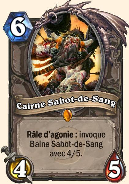 | Texte d'ambiance | Cairne a été tué par Garrosh, alors… ne le placez pas dans un deck de guerrier. Ça ne serait vraiment pas sympa. |